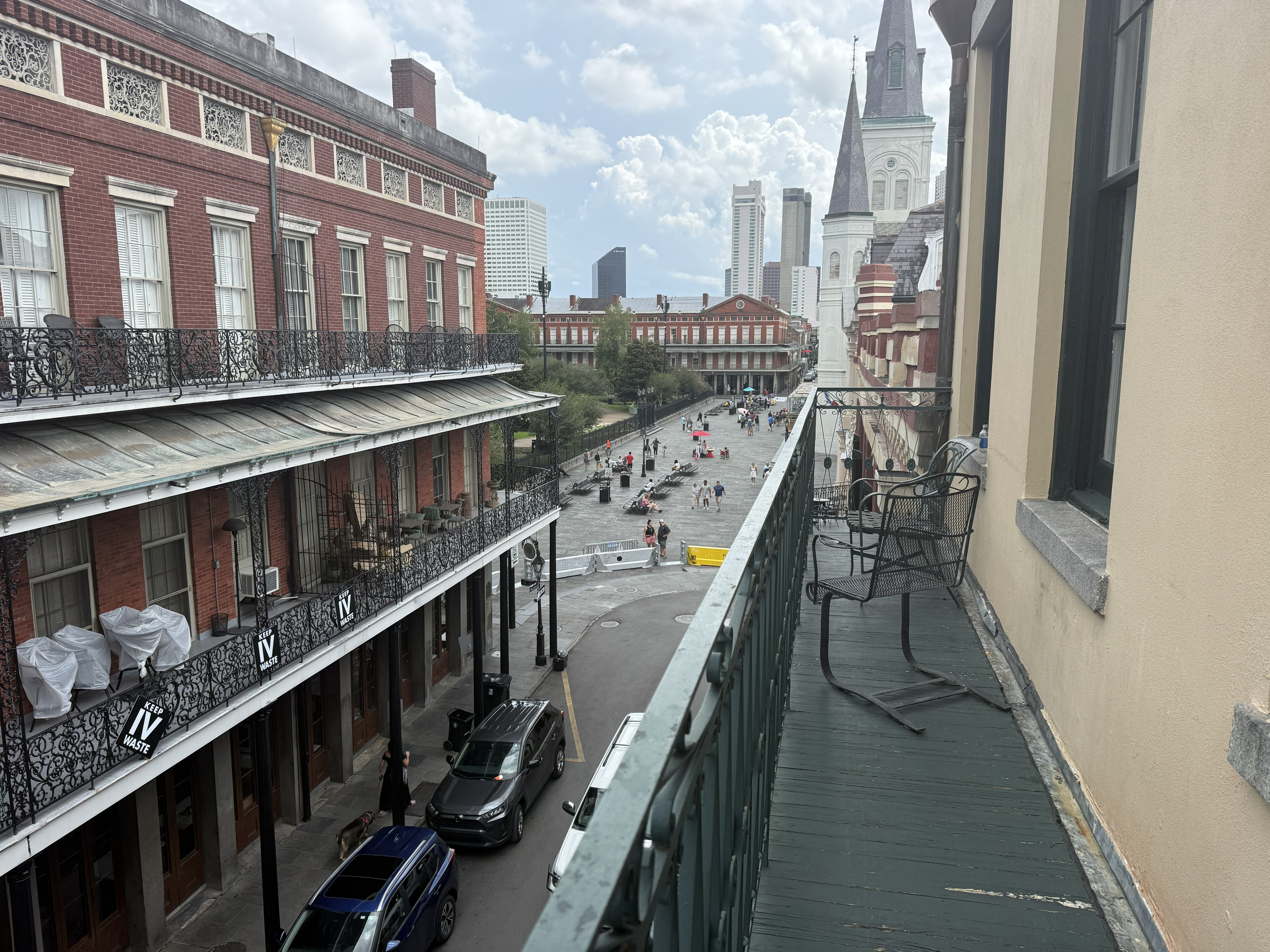We always stay at Place d’Armes Hotel on St. Ann Street, and it has become our home base in New Orleans. The courtyard, the balconies, the quiet charm, it’s the perfect spot tucked just steps from Jackson Square. The location is fantastic, and from the moment we drop our bags, we’re already in the middle of everything we love about the French Quarter.