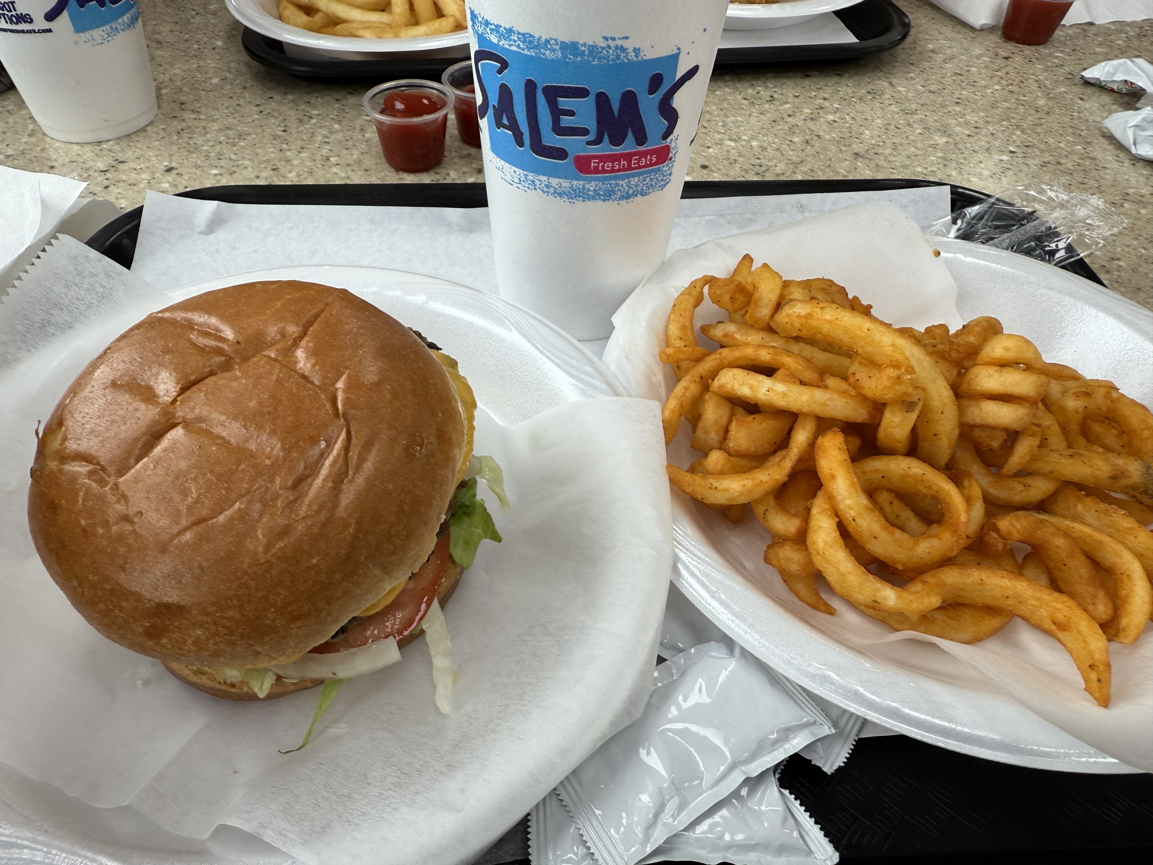 I stopped by Salemβs Fresh Eats in Tampa and ordered the cheeseburger with curly fries, and both were really good. The burger was hot, flavorful, and satisfying, and the curly fries were crispy and seasoned just right, the kind you keep snacking on even when youβre full.