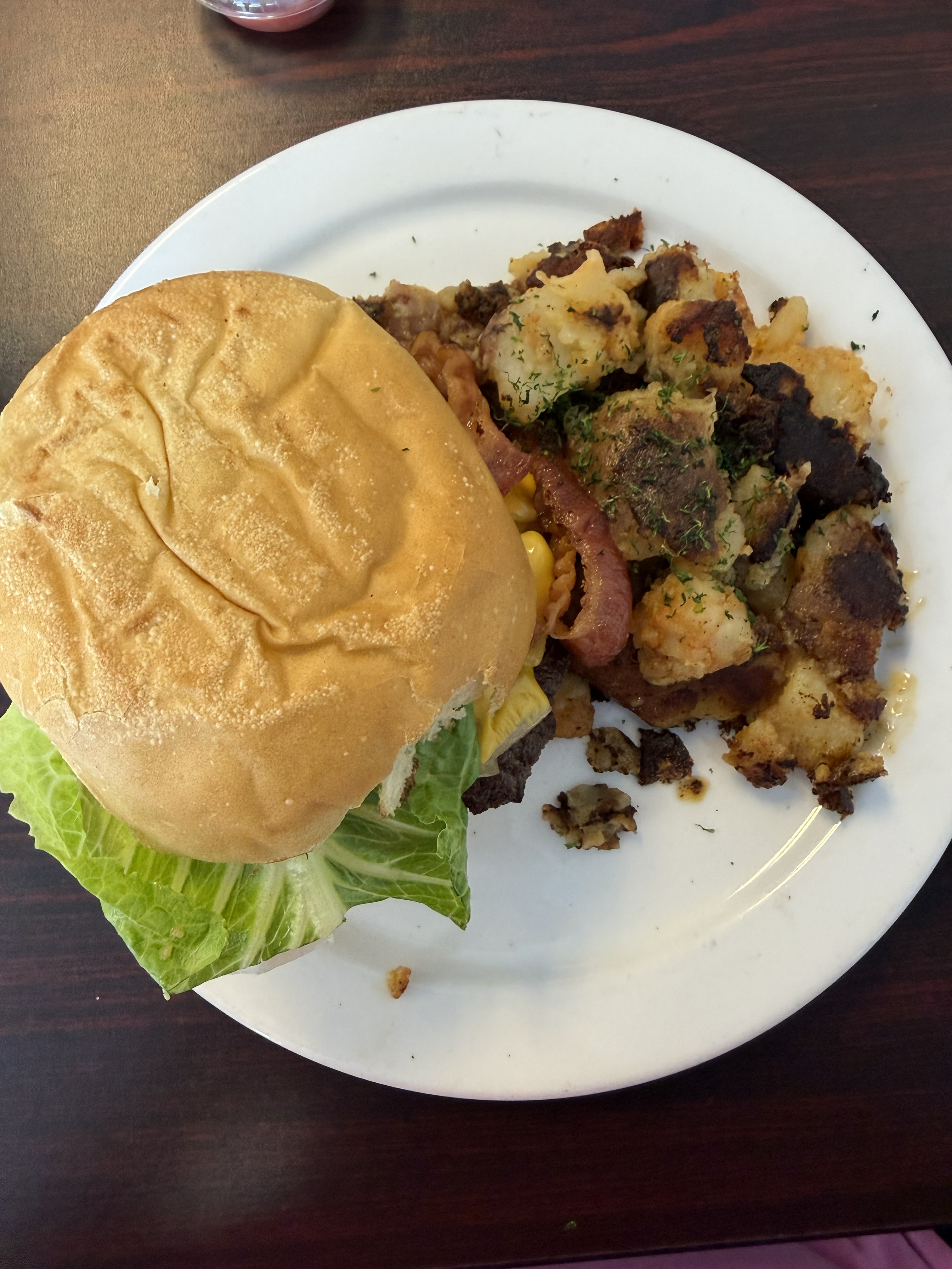 For sides, I went with the red roasted potatoes, and Greg chose the hash brown casserole. My plate (the one in the photo) was hearty, flavorful, and surprisingly light for how much food there was. It was exactly the kind of lunch that hits the spot without feeling greasy or heavy.